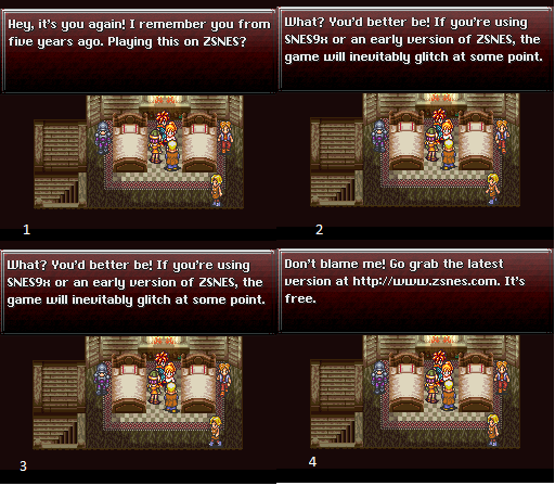 | Цитата (Lance) Если я правильно усвоил информацию из гугла, то Кровавое Эхо акцентировано на более подробном раскрытии сюжета, а Пламя Вечности является сиквелом Хроно Триггера Пока не замечаю разницы между играми. В вводной части только спрайты персонажей поменяли, в остальном всё то же самое. Начало игры тоже идентично. Надо дойти до 2300 года, там в альфа-версии Эха начинался глючный ад.